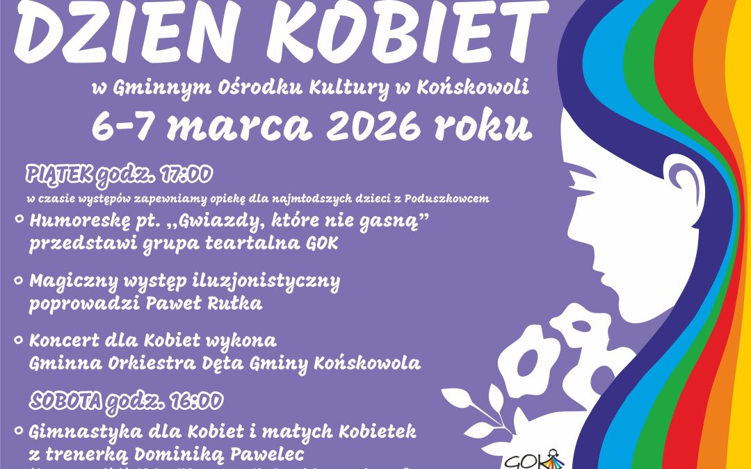 Zapraszamy do świętowania Dnia Kobiet w Gminnym Ośrodku Kultury w Końskowoli! W tym roku przygotowaliśmy aż dwa dni atrakcji dla Pań – coś dla ducha i ciała, zdrowia i rozrywki.