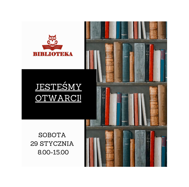 Drodzy Czytelnicy, informujemy, że będziemy otwarci w każdą OSTATNIĄ sobotę miesiąca (w godz.: 8.00-15.00) przez rok 2022 ZACZYNAMY: 29 stycznia...