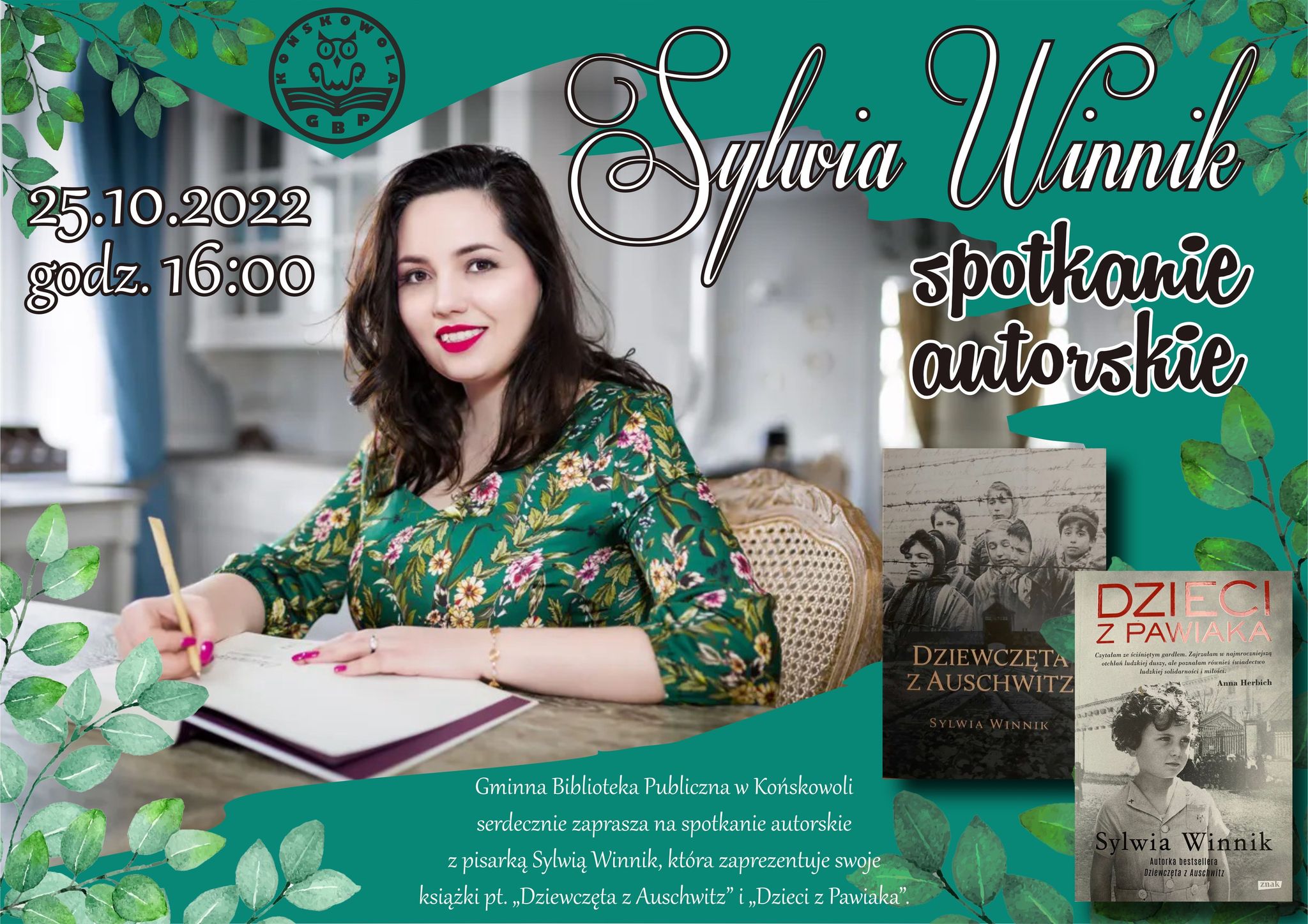 Gminna Biblioteka Publiczna w Końskowoli serdecznie zaprasza na spotkanie autorskie z Sylwią Winnik, które odbędzie się 25 października 2022 roku...